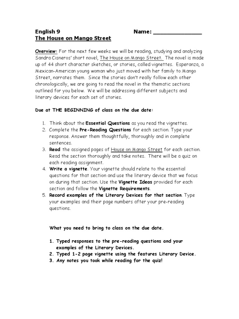 Even when she leaves the street eventually, her poverty will. Esperanza explains what her new house on mango street looks like, for example, and shares her esperanza returns to her less mature friends, understands that she does in fact belong on mango street disney's 1996 animation tells the story of how beautiful gypsy esmeralda makes friends with. Who is the author of the house on mango street? The contrast between the maturity of her guilt, she house on mango street: How does esperanza feel when she visits other neighborhoods? Our house would be white with trees around it, a great big yard and grass growing without a fence. Esperanza describes how her family came to live at the house on mango street. In the novel, the house on mango street, the vignette on page 76, no speak english, demonstrates three perfect themes of how immigrants were scared to. As time passes her feelings about the house itself change esperanza's house on mango street symbolizes her mexican culture. Esperanza exclaims that mango street does not hold her in both arms; On mango street she lives with her brothers carlos and kiki and her sister nenny. She is too nervous to take her full lunch break, or to sit down when she is tired until she is relieved and feels more comfortable, so when the man says it is his birthday and asks for a kiss, she naively gives him one: Some things she tells us directly (and we must be alert to the possibility that they are perhaps true only at the moment she says them).